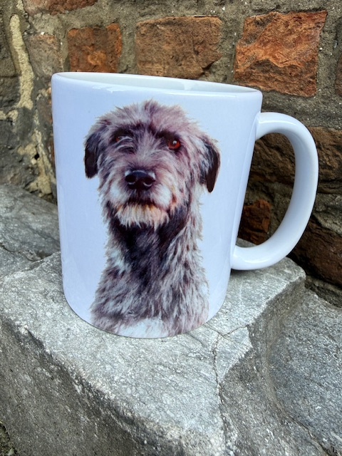 Aardewerk beker van de hand van Lana Mathieson. Ierse Wolfshond ten top. Eentje met een "attitude" zullen we maar zeggen ;-)