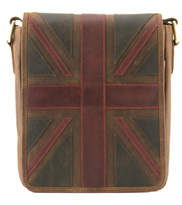 Prachtige handgemaakte lederen cross body bag met geappliceerde Union Jack (Flag) op de voorflap. Zowel door mannen als vrouwen te gebruiken.