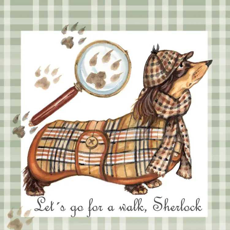 Kleurrijke koelkastmagneet met Sherlock Holmes Teckel.€ 2,95